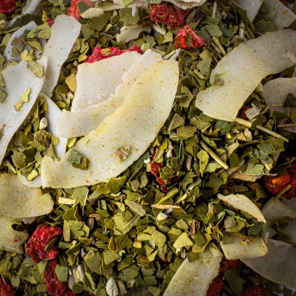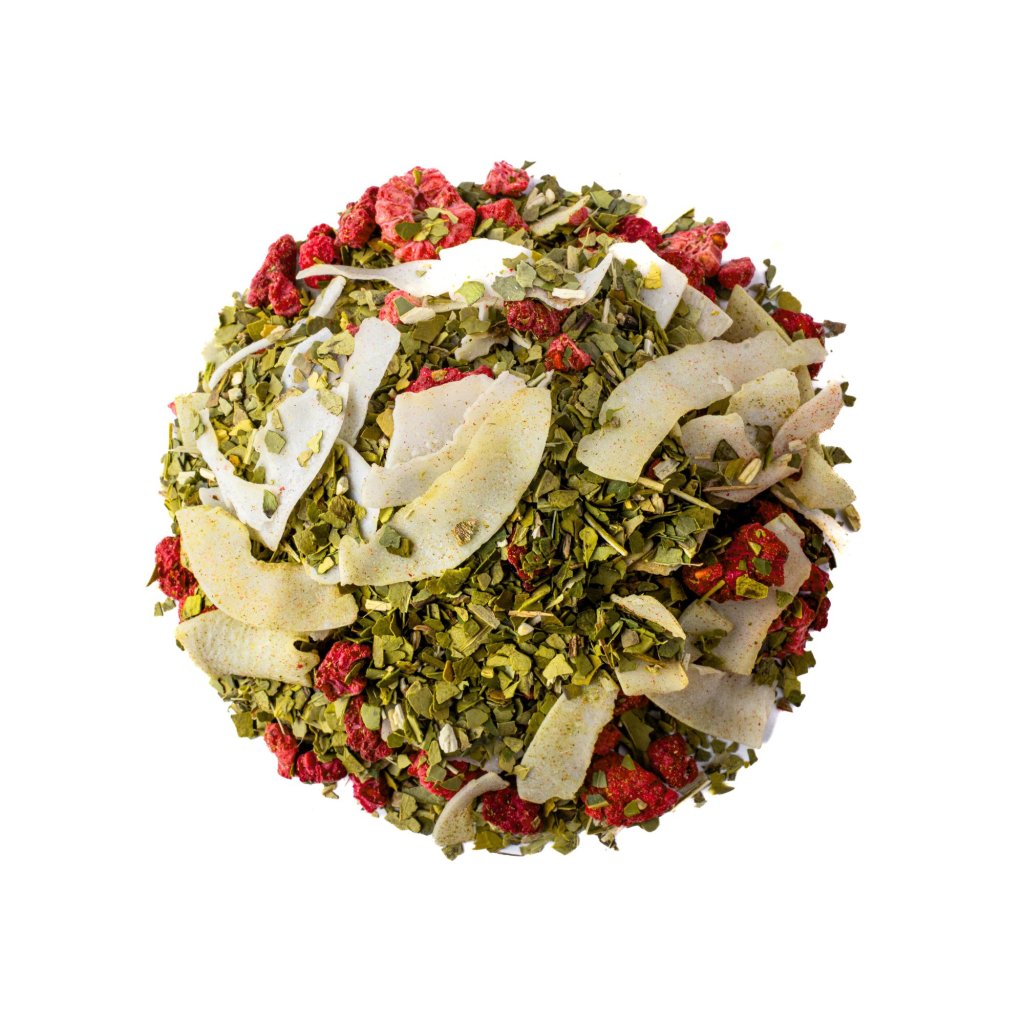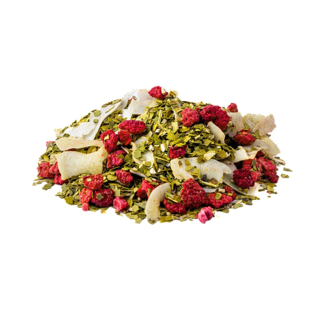 Svěží mix naší Yerby s mrazem sušenými malinami a tenkými kokosovými plátky, které vám vždy navodí pocit léta. Lehce kyselkavá chuť, která postupně sládne s exotickým podtónem indonéského kokosu. Přírodní energie do celého dne, která osvěžuje mysl a podporuje soustředění.