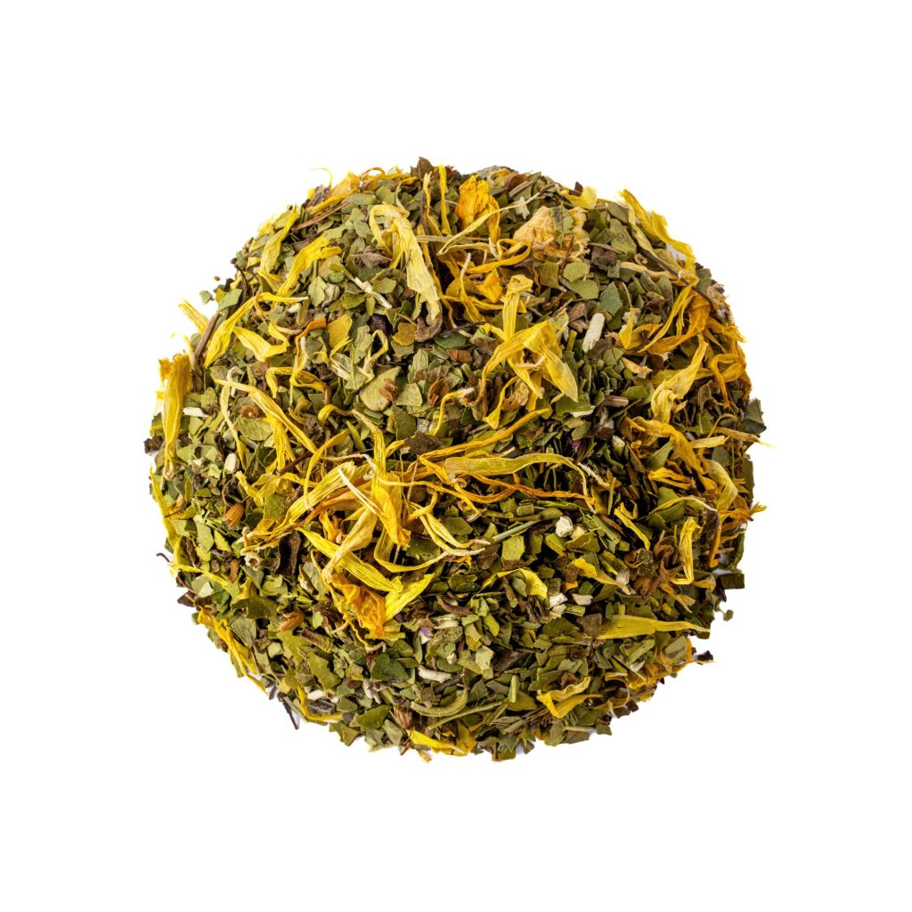 Složení: Bio Yerba Mate (80 %), Bazalka posvátná Tulsi, Měsíček lékařský. Může obsahovat stopy skořápkových plodů. Obsahuje kofein.